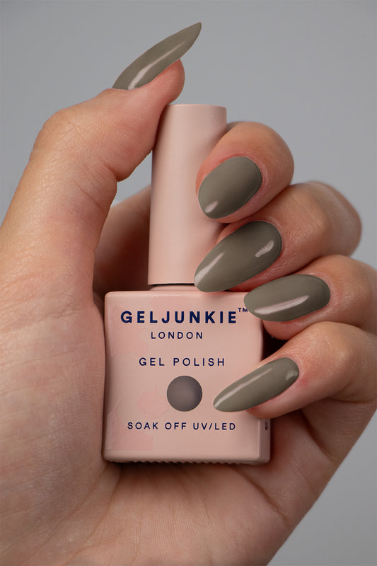 Five shades of grey … create a capsule collection. An achromatic nail colour staple of Lady Grey with accents of precious pewter and fossilized flint: