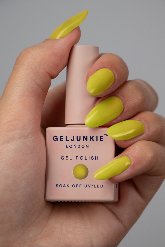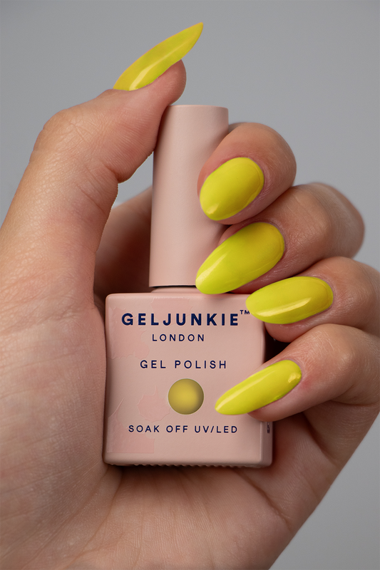 Bright and cheerful, Gel Junkie's Yellow gel polish collection is a celebration of sunshine and optimism. Our shades range from soft, pastel lemons to vibrant canary yellows, each offering a burst of brightness to any look. Perfect for adding a pop of colour to your nails, these polishes provide a smooth, glossy finish and long-lasting wear. Whether you're channeling a sunny, summery vibe or simply looking to brighten up your day, Gel Junkie's yellow collection is the perfect choice for a joyful and uplifting manicure. Let your nails shine with the happiness and warmth of yellow